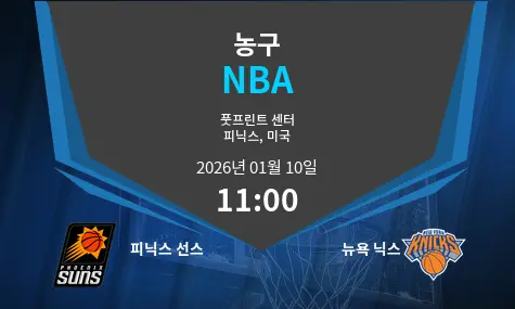 2026년 1월 10일 오전 11시, Mortgage Matchup Center에서 피닉스 선스와 뉴욕 닉스가 맞붙습니다. 이 경기에서는 두 팀의 전략적인 플레이가 큰 영향을 미칠 것으로 보이며, 다양한 변수들이 경기에 주목해야 할 요소로 작용할 것입니다. 최고의 선수들을 앞세우는 두 팀이 어떤 경기를 보여줄지 기대됩니다.