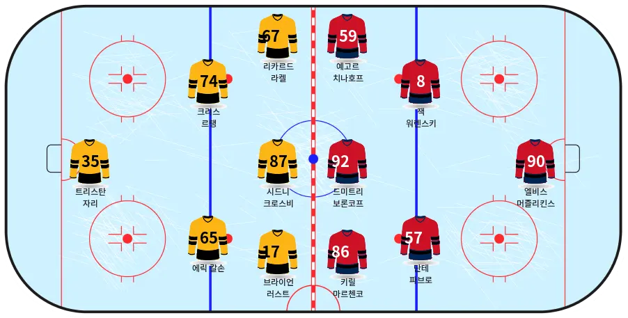- 시드니 크로스비 (C, #87) – 피츠버그 공격의 중심 선수.