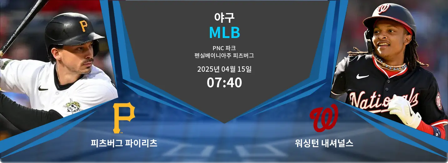 피츠버그 파이리츠는 4월 15일, 펜실베이니아주 피츠버그에 위치한 PNC 파크에서 워싱턴 내셔널스를 홈으로 맞이합니다. 경기는 한국시간 오전 7시 40분에 시작되며, 양 팀은 최근 다득점 경기 흐름 속에서 맞붙게 됩니다. 여러 주전 선수들이 부상 중이지만 양 팀 모두 강력한 라인업을 유지하고 있어 초반 시즌 중요한 승부처가 될 전망입니다. 홈에서 파이리츠는 이점을 살리려 하고, 내셔널스는 다저스를 상대로 거둔 승리의 흐름을 이어가고자 합니다.