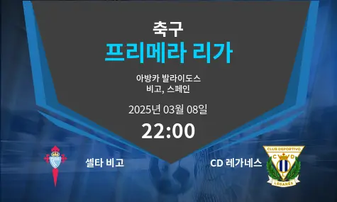 셀타 비고와 CD 레가네스가 2025년 3월 8일 라 리가 경기에서 맞붙습니다. 경기는 셀타 비고의 홈구장 아반카-발라이도스에서 열리며, 현재 셀타 비고는 10위, 레가네스는 16위에 위치하고 있습니다. 레가네스는 강등권에서 벗어나기 위해 필사적인 경기를 펼칠 것으로 예상됩니다. 두 팀 모두 득점력에서 어려움을 겪고 있으며, 수비 중심의 경기 운영을 하는 만큼 저득점 경기가 예상됩니다.