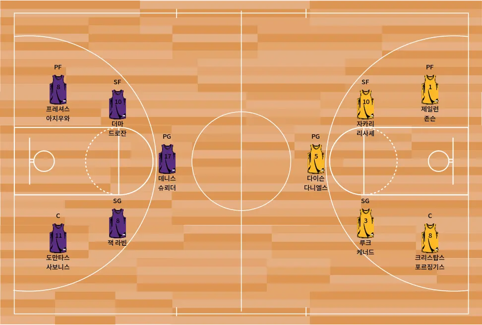 - 더마 드로잔: 베테랑 득점원이자 플레이메이커입니다. 그의 미드레인지 게임은 경기 후반 공격에 필수적입니다.