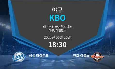 6월 26일 오후 6시 30분(KST), 대구 삼성 라이온즈 파크(대한민국 대구시)에서 삼성 라이온즈와 한화 이글스의 맞대결이 펼쳐집니다. 두 팀 모두 최근 기복 있는 경기력을 보여주고 있으며, 부상자 이슈로 인해 라인업 변동도 감지됩니다. 양팀 모두 선발 투수진이 강력해 팽팽한 투수전이 예상됩니다.