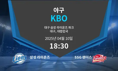 2025년 4월 10일, 대한민국 대구에 위치한 대구 삼성 라이온즈 파크에서 삼성 라이온즈와 SSG 랜더스가 맞붙습니다. 경기는 오후 6시 30분(KST)에 시작될 예정입니다. 시즌 초반 흐름을 잡기 위한 중요한 시리즈로, 삼성은 안정적인 투수력을 바탕으로 홈 승리를 노리고 있고, SSG는 최근 부진한 타격에서 벗어나 반등을 시도합니다.
