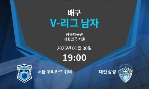 2026년 1월 30일, 서울 장충체육관에서 서울 우리카드 위비와 대전 삼성의 경기가 열립니다. 경기는 저녁 7시에 시작될 예정입니다. 이번 경기에서는 양 팀의 주요 선수들이 경기의 흐름을 결정지을 가능성이 높습니다. 이 경기는 두 팀 모두에게 중요한 의미를 갖고 있으며, 치열한 경합이 예상됩니다.