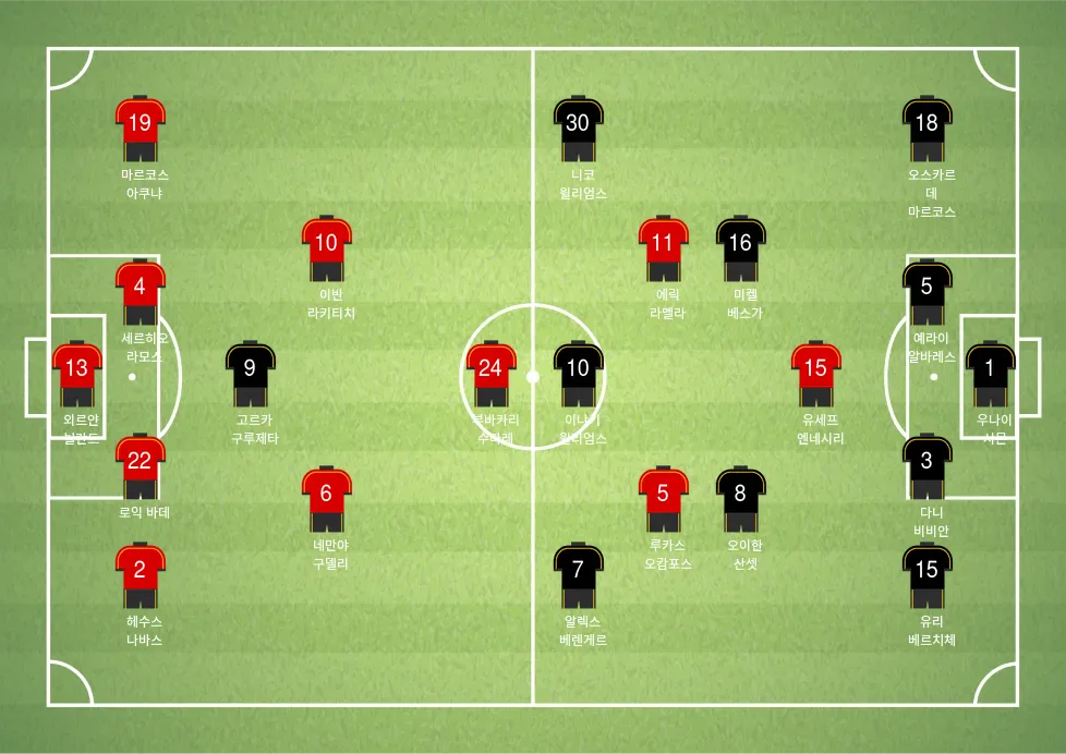 - 이반 라키티치 (중앙 미드필더, #10): 시야와 패스 능력이 뛰어난 베테랑 미드필더.
