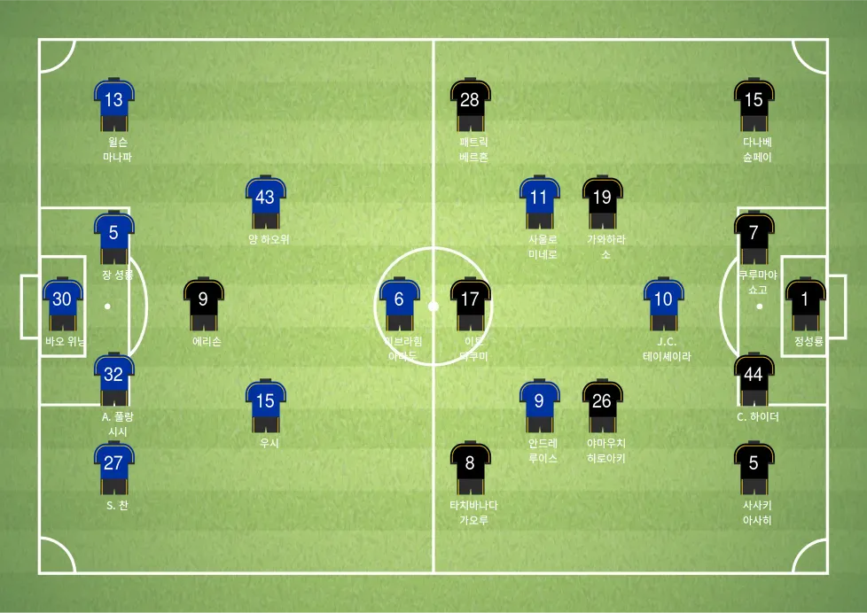 - 우시 – 미드필드에서 수비와 공격을 조율하며 경기 흐름을 조절하는 핵심 선수.