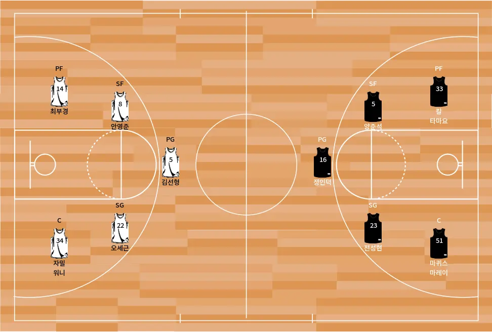 - 김선형 (G, #5) – 경기 흐름을 조율하고 공격을 조직하는 베테랑 가드.