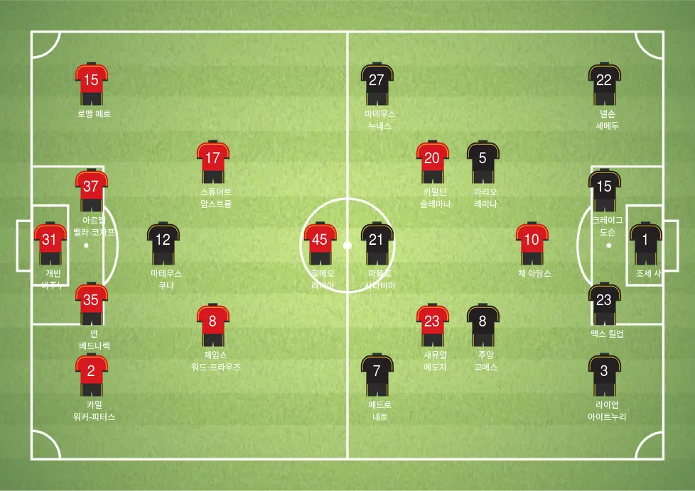 - 마테우스 쿠냐 (스트라이커, #12): 기술과 스피드를 겸비한 팀의 주 공격수.