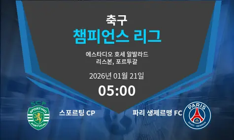 스포르팅 CP와 파리 생제르맹 FC의 경기는 2026년 1월 21일 05:00에 에스타디우 조제 알발라드에서 열립니다. 이 두 팀은 유럽 축구 무대에서 폭넓게 알려진 강호들입니다. 두 팀의 경기력과 전력 분석에 따라 팬들은 치열한 경기를 기대하고 있습니다.