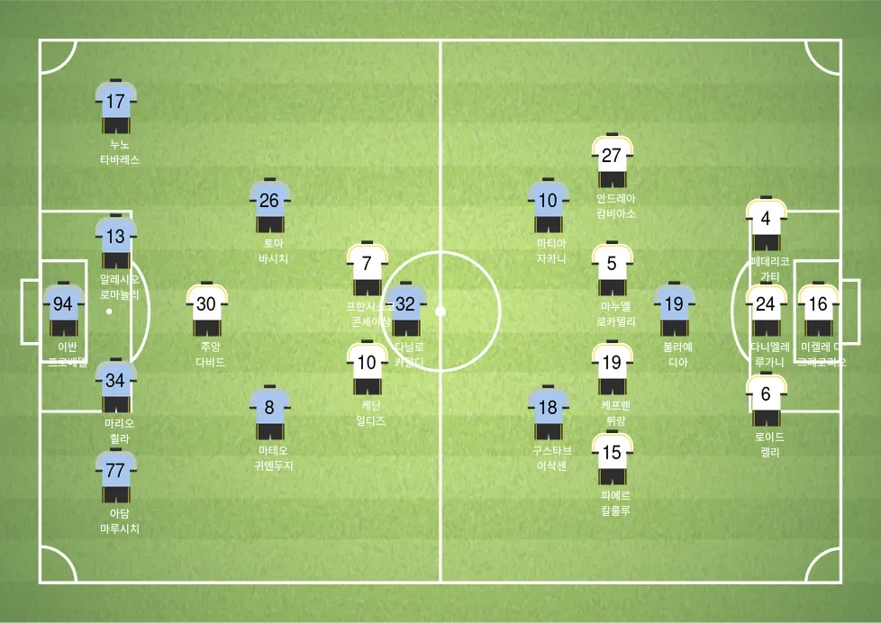 - 안드레아 캄비아소: 측면 공수 밸런스가 뛰어난 윙백.