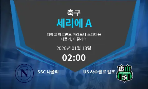SSC 나폴리와 US 사수올로 칼초의 경기는 2026년 1월 18일 Stadio Diego Armando Maradona에서 열리며, 경기 시작 시간은 02:00입니다.