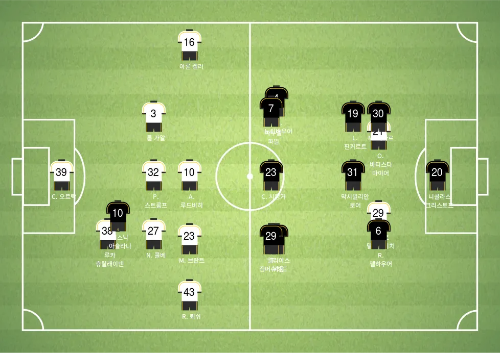 - 모리스 크라텐마허 (CM) – 출장 정지 상태지만, 팀의 중심 플레이메이커 역할을 수행했다.