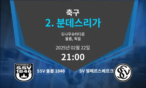 - 분데스리가에서 펼쳐지는 SSV 울름 1846과 SV 엘버스베르크의 경기가 2025년 2월 22일, 독일 울름의 도나우슈타디온에서 개최됩니다. 두 팀의 시즌 성적은 대조적입니다. 울름은 17위로 강등권 싸움을 하고 있으며, 엘버스베르크는 7위에 올라 안정적인 시즌을 보내고 있습니다. 울름은 22경기에서 단 3승을 거둔 반면, 엘버스베르크는 10승을 기록하며 좋은 흐름을 유지하고 있습니다. 강등을 피하려는 울름과 상위권 도약을 노리는 엘버스베르크의 중요한 경기입니다.