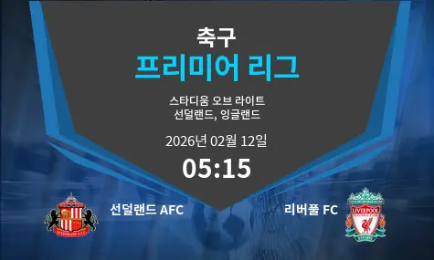 2026년 2월 12일에 개최되는 선덜랜드 AFC와 리버풀 FC의 경기는 Stadium of Light에서 열립니다.
