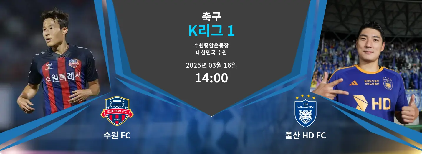 수원 FC는 2025년 3월 16일 14:00 KST, 수원종합운동장에서 울산 HD FC와 K리그 1 경기를 치릅니다. 울산 HD FC는 3승 1패로 리그 2위를 달리고 있으며, 반면 수원 FC는 0승 2패 2무로 11위에 머물고 있습니다.