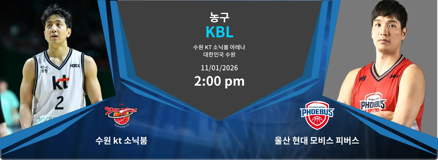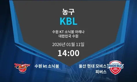 수원 kt 소닉붐과 울산 현대 모비스 피버스의 경기는 2026년 1월 11일 14:00에 수원 KT 소닉붐 아레나에서 열립니다. 양 팀은 강력한 경기력을 자랑하며 치열한 접전을 벌일 것으로 기대됩니다.