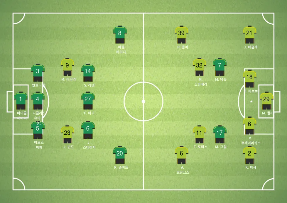 - 마티아스 스반베리 (MF) – 중원을 조율하며 경기 템포를 조절하는 플레이메이커.