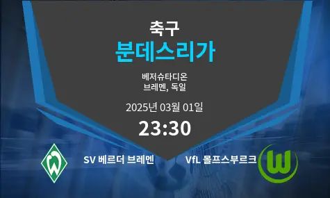 베르더 브레멘과 볼프스부르크가 2025년 3월 1일 KST 기준 오후 11시 30분, 독일 브레멘의 베저슈타디온에서 중요한 분데스리가 경기를 치릅니다.