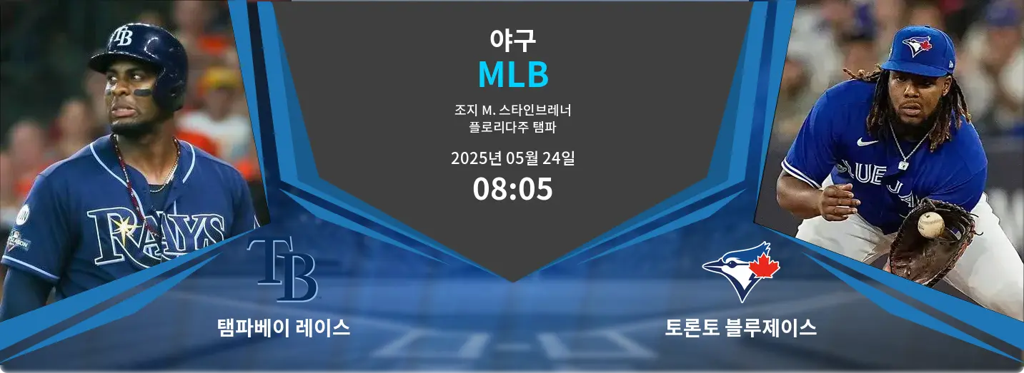 탬파베이 레이스와 토론토 블루제이스는 2025년 5월 24일 오전 8시 5분(KST), 미국 플로리다주 탬파의 조지 M. 스타인브레너 필드에서 맞대결을 펼칩니다. 이번 경기는 서로 다른 흐름과 전력을 가진 아메리칸리그 팀들의 흥미로운 대결입니다. 레이스는 불펜과 주요 선수들의 부상으로 어려움을 겪고 있는 반면, 블루제이스는 최근 기복은 있지만 비교적 건강한 로스터와 투수진을 유지하며 전력 우위를 지키고 있습니다.
