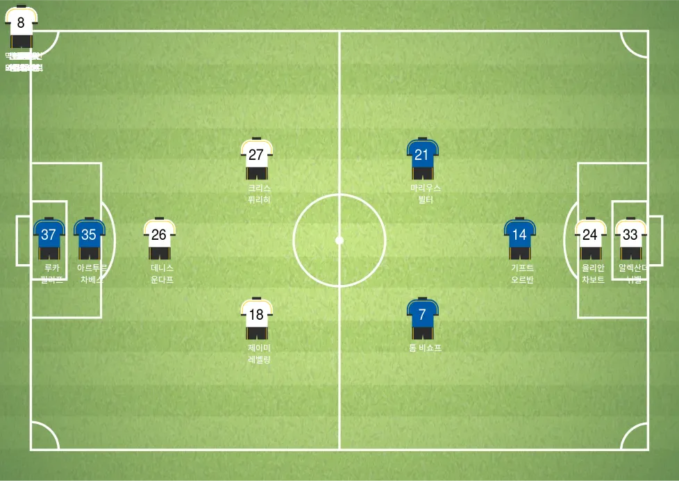 - 크리스 퓌리히 (LW) – 스피드가 뛰어난 윙어로, 호펜하임의 측면 수비를 압박할 수 있는 선수.