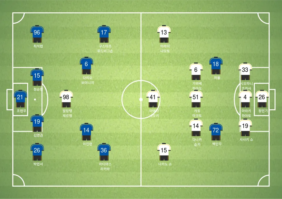 두 팀 모두 전술적으로 균형 잡힌 구조를 갖추고 있으며, 조직적인 수비와 안정적인 전개를 중시합니다. 울산 HD FC는 홈 이점을 활용해 4-4-2 전술로 수비를 강화하고 빠른 역습으로 기회를 만들 가능성이 높습니다. 반면 산프레체 히로시마는 3-6-1 전술을 통해 미드필드 장악력과 전환 속도에서 우위를 점하려 할 것입니다. 이번 경기는 전술적 완성도와 경기 운영 능력이 승부를 가를 핵심 요소가 될 전망입니다.