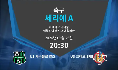 US 사수올로 칼초 VS US 크레모네세 경기 분석입니다. 이 경기는 2026년 1월 25일 마페이 스타디움 – 치타 델 트리콜로레에서 열리며 시작 시간은 20:30입니다. 두 팀은 각각 독특한 전략과 스타일을 가지고 있으며, 이 경기는 팬들에게 흥미로운 경기가 될 것입니다.