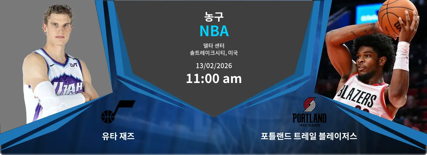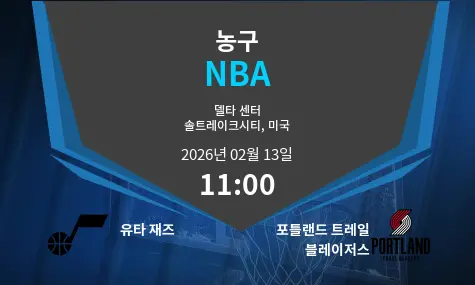 유타 재즈와 포틀랜드 트레일 블레이저스의 경기는 2026년 2월 13일 델타 센터에서 11:00에 열립니다. 이 매치는 서부 컨퍼런스에서 치열한 경합을 벌이고 있는 두 팀 간의 중요한 맞대결로, 양 팀 모두 플레이오프 희망을 살리기 위해 중요한 승리를 노리고 있습니다.
