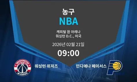 2026년 2월 21일, 워싱턴 D.C.에 위치한 Capital One Arena에서 워싱턴 위저즈와 인디애나 페이서스 간의 흥미진진한 NBA 경기가 저녁 09:00에 시작될 예정입니다. 이 두 팀은 각자의 장점과 도전 과제를 안고 시즌을 보내고 있으며, 팬들은 긴장감 넘치는 경기를 기대하고 있습니다.