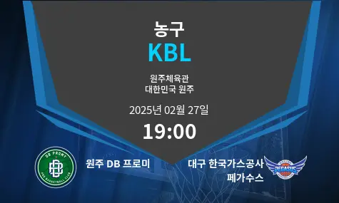 원주 DB 프로미가 대구 KOGAS 페가수스와 2025년 2월 27일에 맞대결을 펼칩니다. 경기는 대한민국 원주 원주체육관에서 19:00 KST에 시작됩니다. 정규 시즌이 진행됨에 따라 두 팀 모두 순위를 끌어올리려 하고 있어, 이번 경기는 중요한 승부가 될 것입니다.