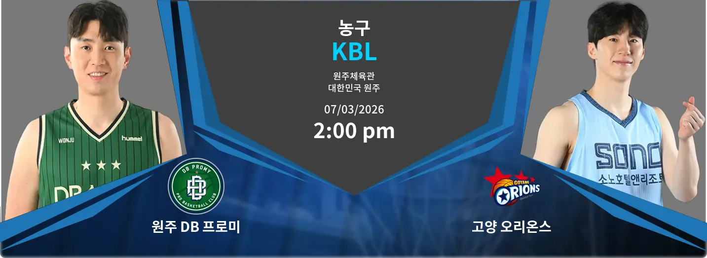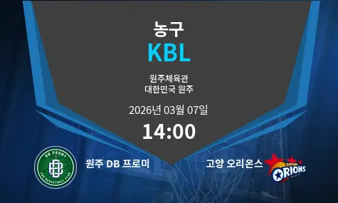 원주 DB 프로미와 고양 오리온스의 맞대결은 2026년 3월 7일, 14:00에 원주 체육관에서 열릴 예정입니다. 이 두 팀은 각각의 강점을 가지고 있으며, 팬들에게 흥미로운 경기가 될 것입니다.