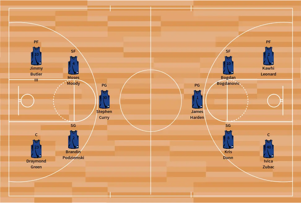 - Kawhi Leonard (#2, PF): Dominant on both ends of the court with elite defensive presence and shot-making.