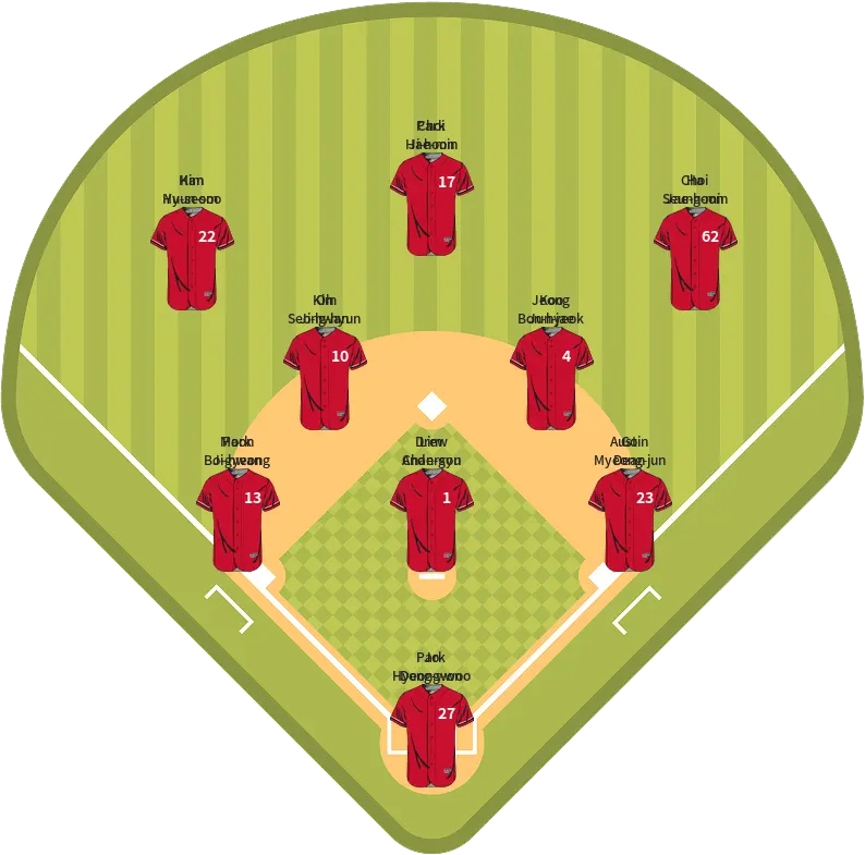 - Jo Hyeong-woo (C) – Responsible for pitch-calling and maintaining pitching rhythm.