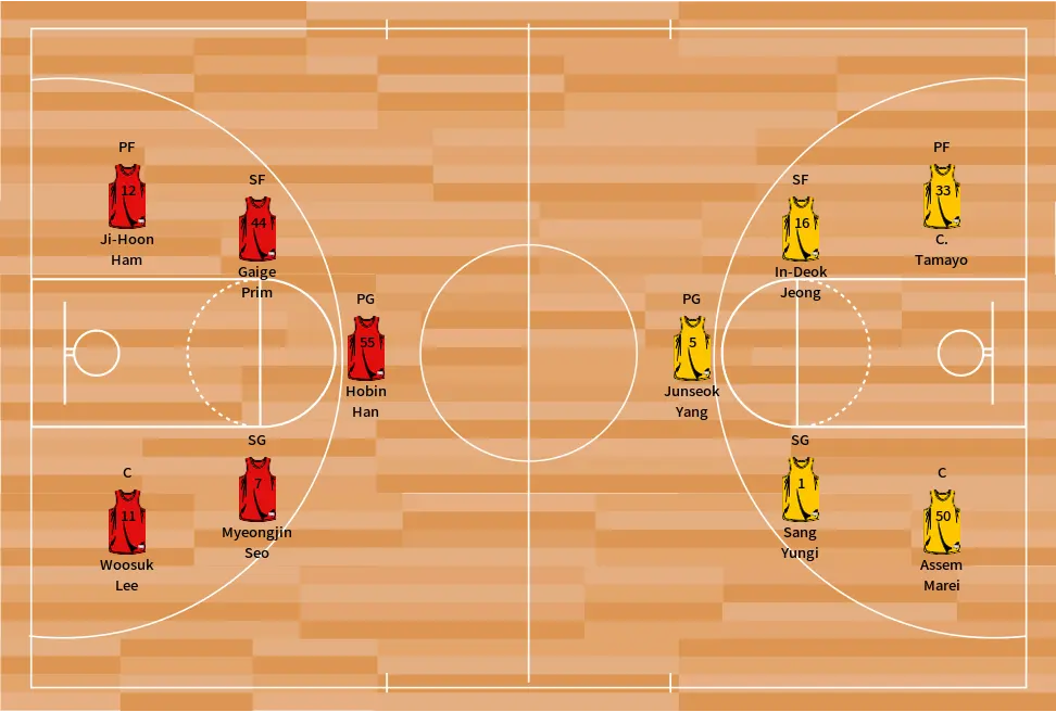 - Junseok Yang (PG) – Young and dynamic point guard who controls pace and orchestrates the offense.