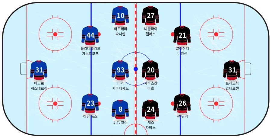 - 미카 지바네자드 (#93): 팀 내 최다인 4골을 기록하며 공격을 이끌고 있습니다. 그의 페이스오프 성공률(53.7%)은 매우 중요합니다.