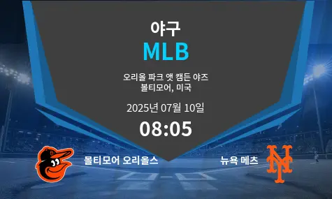 뉴욕 메츠와 볼티모어 오리올스가 오리올 파크 앳 캠든 야즈에서 맞붙습니다. 두 팀 모두 공격력이 뛰어나며 최근 경기에서도 높은 득점을 기록해 왔습니다. 메츠는 최근 강력한 경기력을 보이고 있고, 오리올스는 홈경기 이점을 활용할 것으로 보입니다.