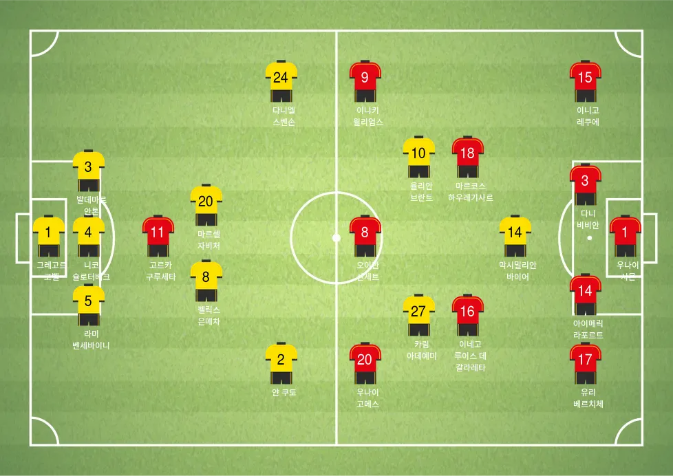 이번 경기는 개방적이고 치열한 양상으로 흘러갈 가능성이 크다. 도르트문트는 높은 압박과 다수의 득점 기회를 만들어낼 것이고, 빌바오는 빠른 전환 플레이를 통해 기회를 노릴 것이다. 전체적으로 두 팀 모두 공격적인 장면을 보여주며, 도르트문트의 화력과 빌바오의 역습 능력이 어우러져 역동적이고 다득점이 예상되는 경기가 될 수 있다.
