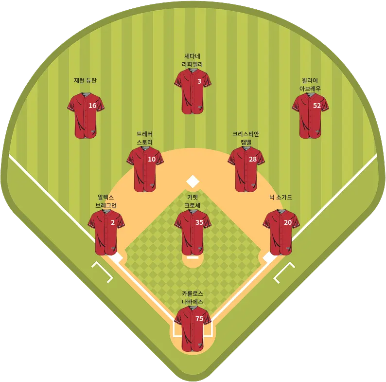 - 알렉스 브레그먼 (3루수): 타율 .304, 홈런 11개, 타점 35개로 타선의 중심을 잡아주는 핵심 선수입니다.