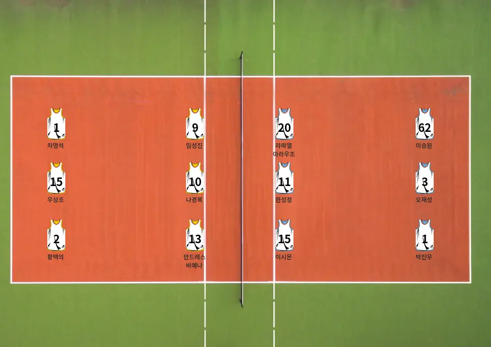 • 한성정 (#11): 리시브와 카운터 공격에 중요한 고공 공격형 아웃사이드 히터입니다.