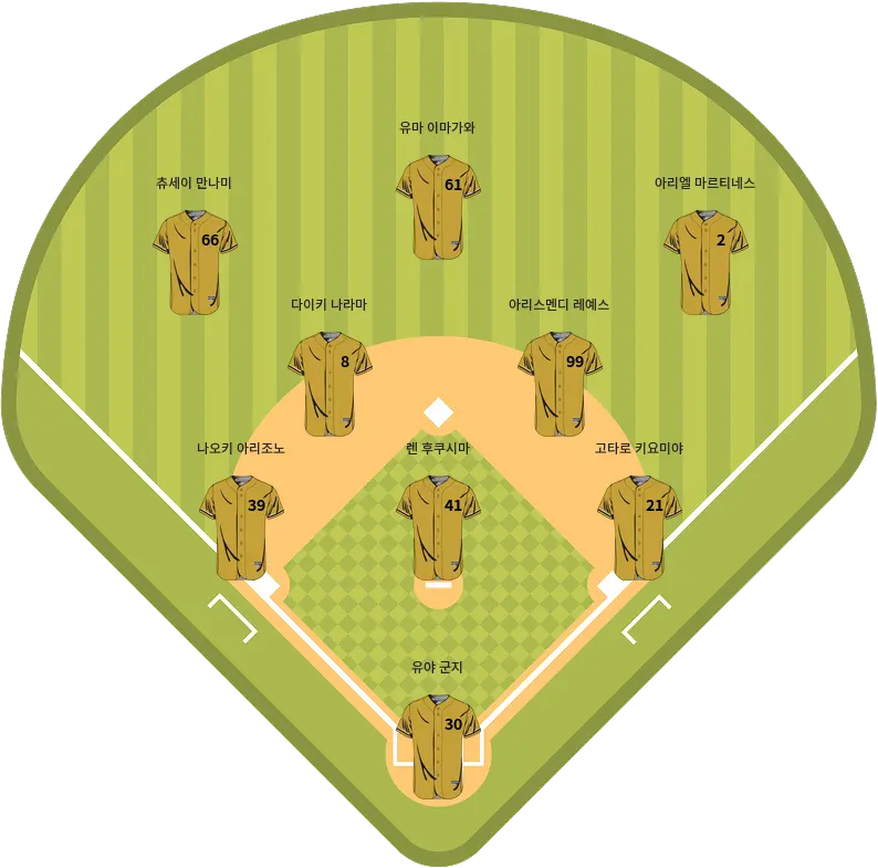 - 츄세이 만나미: 빠른 주력과 멀티 히팅 능력을 가진 선수.
