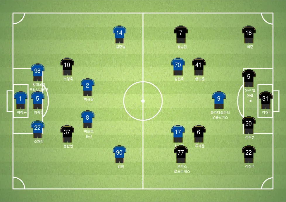 - 조영욱 : 창의적인 움직임과 결정력 있는 공격수.