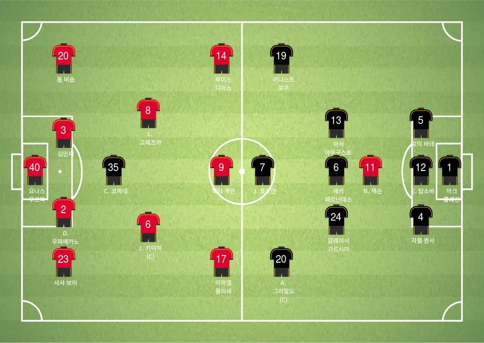 4. L. 고레츠카: 중앙 미드필드에서 강력한 존재감을 보이며, 플레이를 전진시키고 중요한 득점에 기여할 수 있는 핵심 선수입니다.