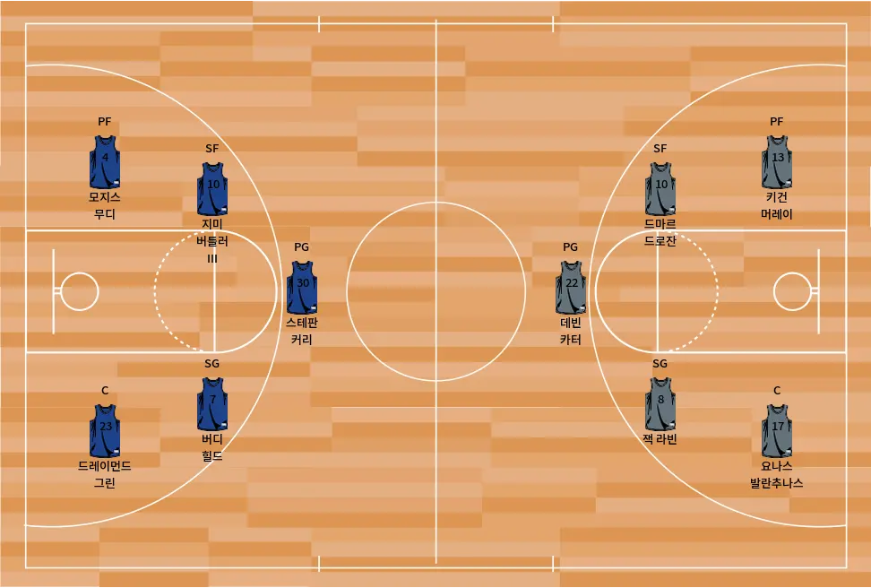- 버디 힐드 (SG, #7): 외곽 슈팅에서 강점을 보이며 워리어스의 공간을 넓혀주는 선수.