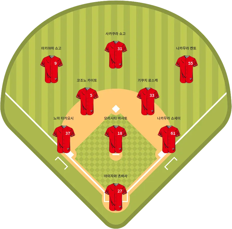 - 아키야마 쇼고: 경험 많은 외야수로 꾸준한 타격이 강점.