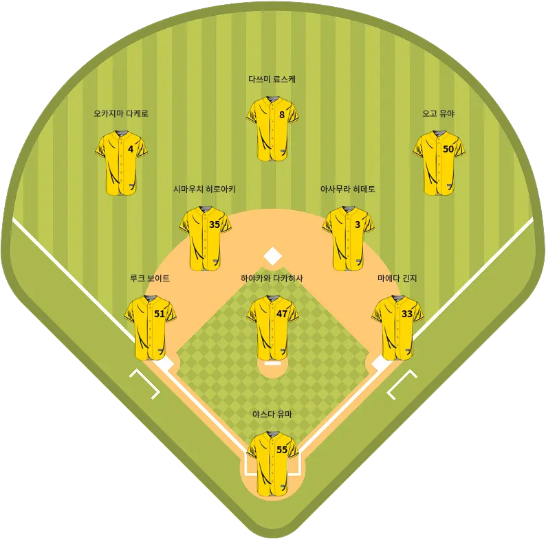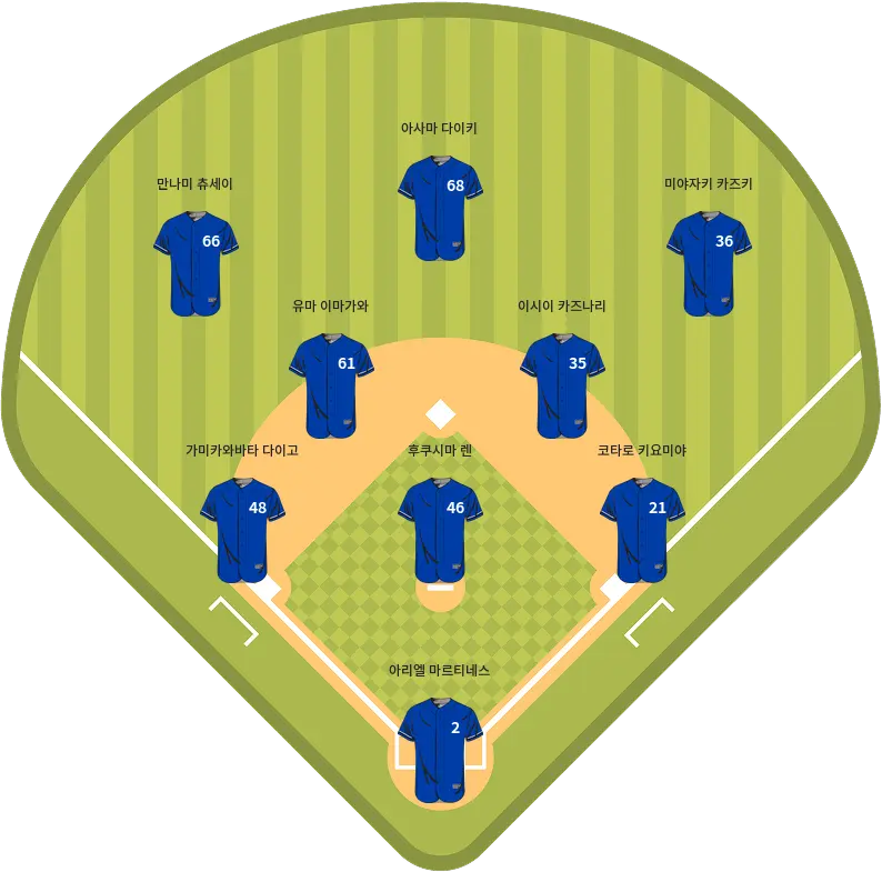 - 코타로 키요미야 – 팀의 핵심 장타자, 장거리 홈런 능력이 돋보인다.