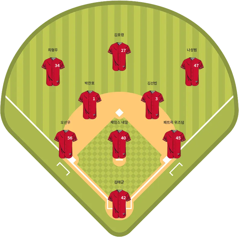 - 박건우: 꾸준한 타격으로 팀 공격에 기여하는 외야수.
