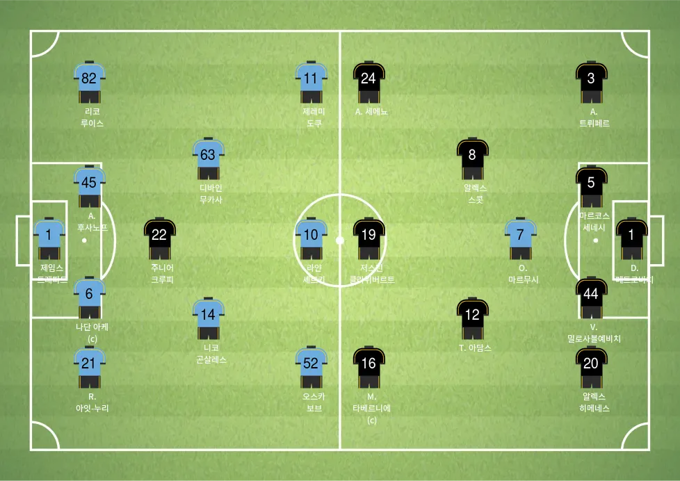- 알렉스 스콧: 경기 템포 조절과 볼 배급에 핵심적인 미드필더입니다.
