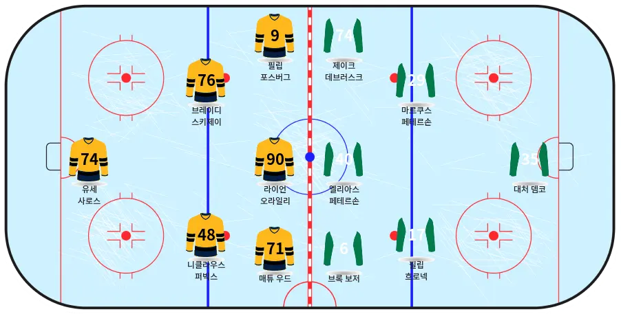 - 유세 사로스: 9경기에서 $.904$의 세이브 성공률을 기록한 선발 골리로, 불안한 수비에 있어 매우 중요한 선수입니다.