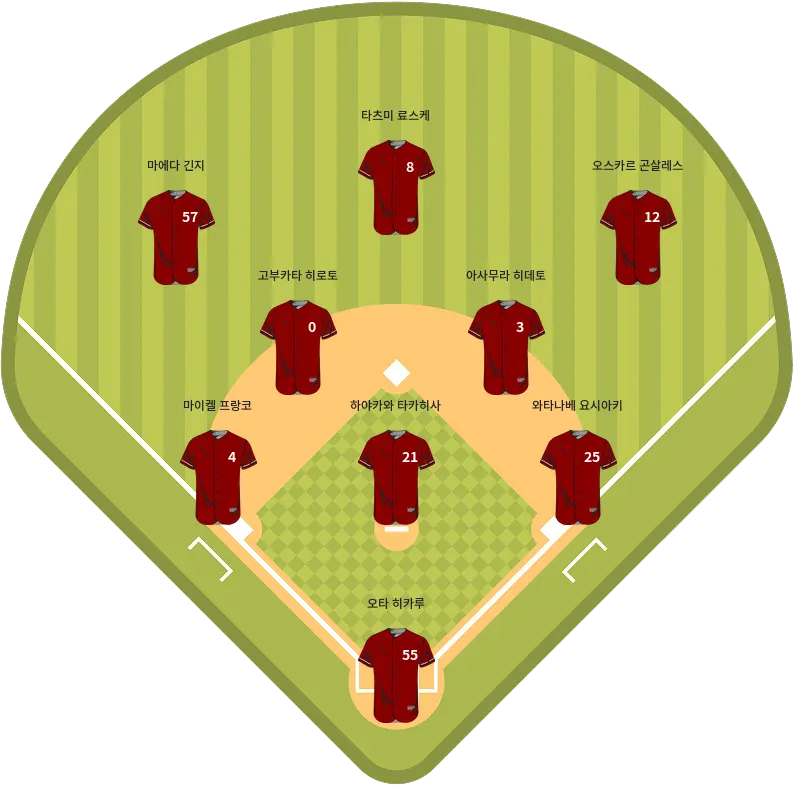 - 겐다 소스케: 수비의 중심을 지키며 꾸준한 타격을 보여주는 유격수.