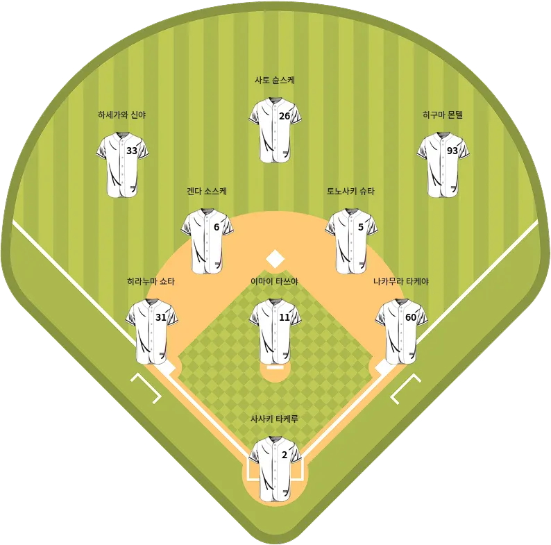 - 하야카와 타카히사: 삼진 능력이 돋보이는 핵심 선발 투수.
