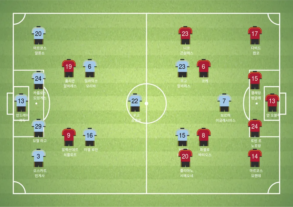 이 경기는 일부 구역에서 균형을 이루겠지만, 아틀레티코 마드리드는 선수층의 깊이, 중원 장악력, 최근의 상승세 덕분에 전반적으로 우위를 점할 가능성이 있습니다. 다만 셀타 비고가 홈 이점을 살려 조직적인 압박과 안정적인 구조를 유지한다면 경기를 어렵게 만들 수 있습니다. 결과는 치열할 것으로 보이지만, 분위기상 아틀레티코 마드리드가 근소하게 앞설 가능성이 있습니다.
